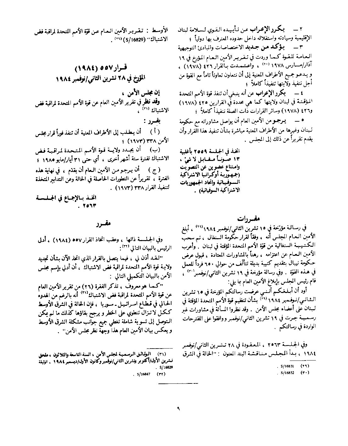 قرار مجلس الأمن 557 (1984) قوة الأمم المتحدة لمراقبة فض الاشتباك