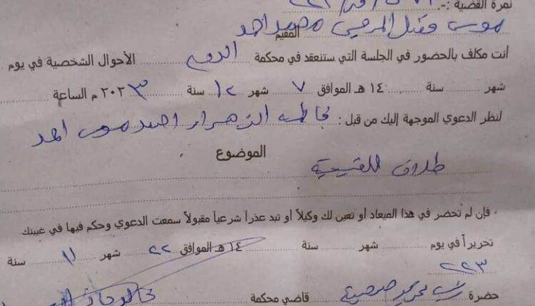 أنت مكلف بالحضور فى الجلسة التي ستنعقد فى محكمة الدويم للأحوال الشخصية في يوم ٢٠٢٣/١٢/٧م،لنظر الدعوى الموجهة إليك من قبل: فاطمة الزهراء احمد موسى احمد .