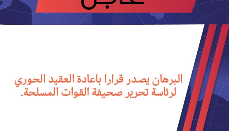 البرهان يصدر قرارا باعادة العقيد الحوري لرئاسة تحرير صحيفة القوات المسلحة..وذلك بعد إقالته منها ويعد الحوري من أقلام القوات المسلحة